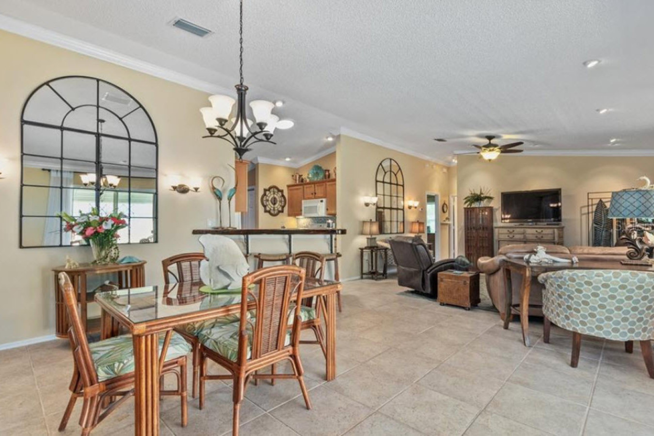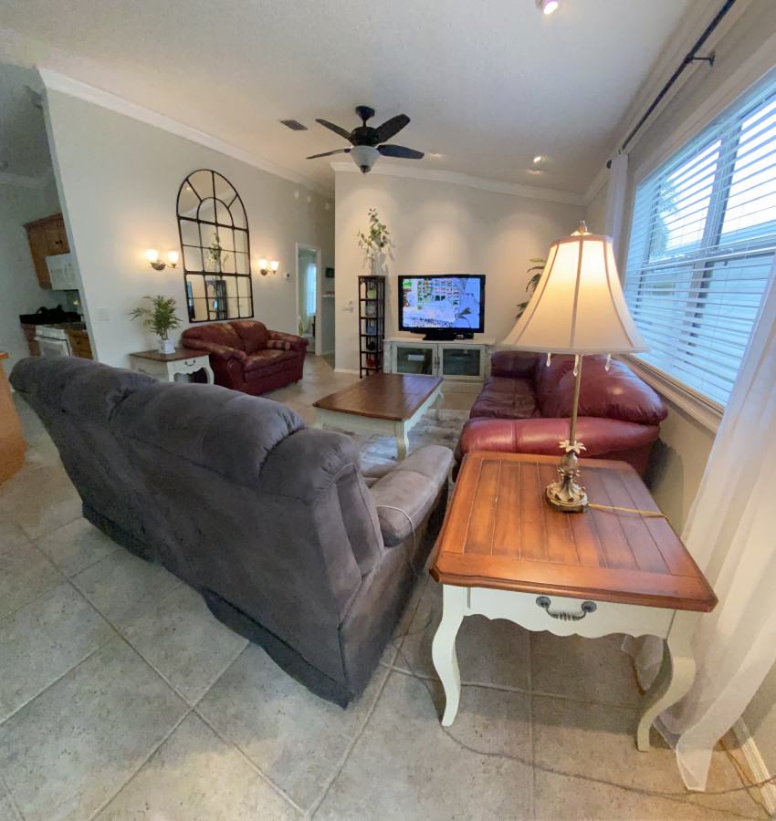 IMPORTANT !!! JAN-MAR only full month bookings / no partial bookings allowed Cabot Cove Villa in The Village of Bonnybrook β Your Private Oasis Awaits! π‘ Discover the perfect blend of comfort and convenience with this adorable 2-bedroom, 2-bathroom Cabot Cove Villa located in the highly sought-after Village of Bonnybrook. This delightful retreat offers a private and serene atmosphere, making it the ideal getaway for those looking to experience the best of The Villages. π³ A Private Oasis β Beautiful Landscaping and Custom Features As you approach the home, you'll be welcomed by meticulously maintained landscaping, custom awnings, and a lot that backs up to a courtyard villa wall, providing a sense of privacy and your own personal oasis. Step into the enclosed lanai, where you'll immediately appreciate the Chattahoochee Stone flooring, drywall finish on the walls, and acrylic windows, making this space comfortable and inviting year-round. π Comfortable Interiors β Volume Ceilings, Crown Molding, and More Walking into the home, you'll be greeted by volume ceilings and elegant crown molding, with tile flooring throughout the entire home for a cohesive and polished look. The dining area, located to the left, flows seamlessly into the living room, where youβll find a live edge breakfast bar β perfect for casual dining or enjoying your morning coffee. π³ Well-Equipped Galley Kitchen β Functional and Charming The galley kitchen is a delight, featuring tile countertops, maple cabinets with convenient pull-out shelves, and extra cabinetry in the pantry area, offering plenty of storage space. This well-designed kitchen is both functional and charming, making meal preparation a breeze. ποΈ Comfortable Bedroom Layout β Perfect for Relaxation Toward the back of the home, youβll find two comfortable bedrooms and two well-appointed bathrooms. The master bedroom offers volume ceilings, a spacious walk-in closet, a single sink vanity with ample counter space, and a walk-in shower. The guest bathroom features a shower-tub combo with glass doors and high ceilings, providing a bright and airy feel. π Bedroom Layout: 2 Bedrooms, 2 Bathrooms β Sleeps 4 Bedroom 1: One King Bedroom (2 guests) Bedroom 2: One Queen Bedroom (2 guests) π Prime Location β Close to Shopping, Entertainment, and More This home is perfectly situated for those who want to enjoy everything The Villages has to offer. Located in the Village of Bonnybrook, youβll be just minutes away from shopping, entertainment, banking, and the lively Lake Sumter Square. Whether youβre looking to explore the local area or relax in your own private oasis, this home provides the perfect base for your getaway. π Experience The Villages Lifestyle With its prime location, comfortable interiors, and private outdoor space, this charming Cabot Cove Villa in The Village of Bonnybrook offers the ideal combination of comfort and convenience. Donβt miss the opportunity to make this beautiful home your next vacation retreat in The Villages.