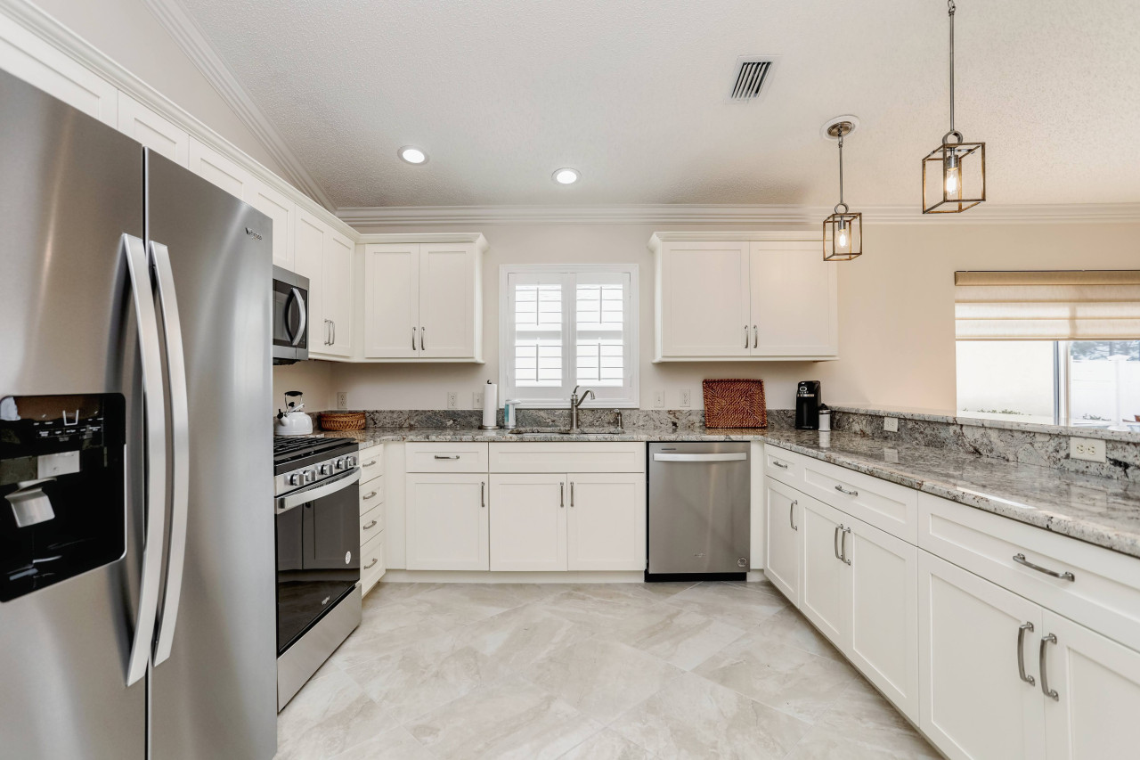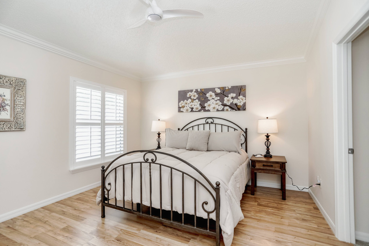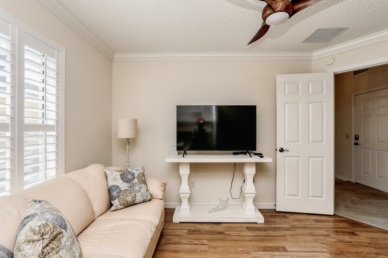 🏡 Welcome to Exquisite Retreat by The Arnold Palmer Golf Course: Your Serene Getaway in the Villages of Bonnybrook! Discover the perfect blend of comfort and convenience at this charming villa located in the desirable Villages of Bonnybrook. Exquisite Retreat by The Arnold Palmer Golf Course offers a delightful 2-bedroom, 2-bathroom haven with a beautiful green patio view and a serene, fenced private patio. ✨ Impeccable Comfort & Modern Living Step into a bright and airy space adorned with clean whites and updated decor. The spacious kitchen is equipped with modern appliances and features plantation shutters, adding a touch of elegance and allowing natural light to flow throughout the home. The open-concept living area provides a welcoming atmosphere for relaxation or entertainment, with large TVs in the living room and bedrooms for your viewing pleasure. 🌳 Outdoor Bliss Enjoy your morning coffee or evening cocktails on the inviting lanai, overlooking a beautifully landscaped green space. The fenced patio offers privacy and a peaceful retreat, perfect for outdoor dining or simply unwinding. The property is equipped with plantation shutters that enhance its modern and fresh ambiance. 🌴 Explore The Villages & Beyond Conveniently located near Lake Sumter Landing and Spanish Springs Square, you'll have easy access to a vibrant community atmosphere filled with daily live entertainment, dining, and shopping options. These town squares are the heart of The Villages, offering a variety of festivals and events throughout the year. Whether you're in the mood for a casual stroll, a lively night out, or a delicious meal, these squares have something for everyone. For golf enthusiasts, The Arnold Palmer Championship Golf Course is just a stone's throw away, providing a challenging and scenic golfing experience. In addition, with a Villages Temporary Resident ID (available for a $50 fee paid directly to The Villages), guests can enjoy access to 40+ executive golf courses throughout the community, offering a variety of challenges for all skill levels. These courses are included in the amenities accessible during your stay, making it easy to enjoy a round of golf in the beautiful Florida sunshine. 🚗 Additional Amenities The villa includes a one-car garage and a golf cart garage, making it convenient for you to explore the area. Guests can also access a golf cart for an additional fee, after signing a liability waiver, enhancing your experience by allowing easy travel around The Villages. This villa is a non-smoking property. The Villages is an active senior community for residents 55 years and older, offering a rich and engaging lifestyle.
