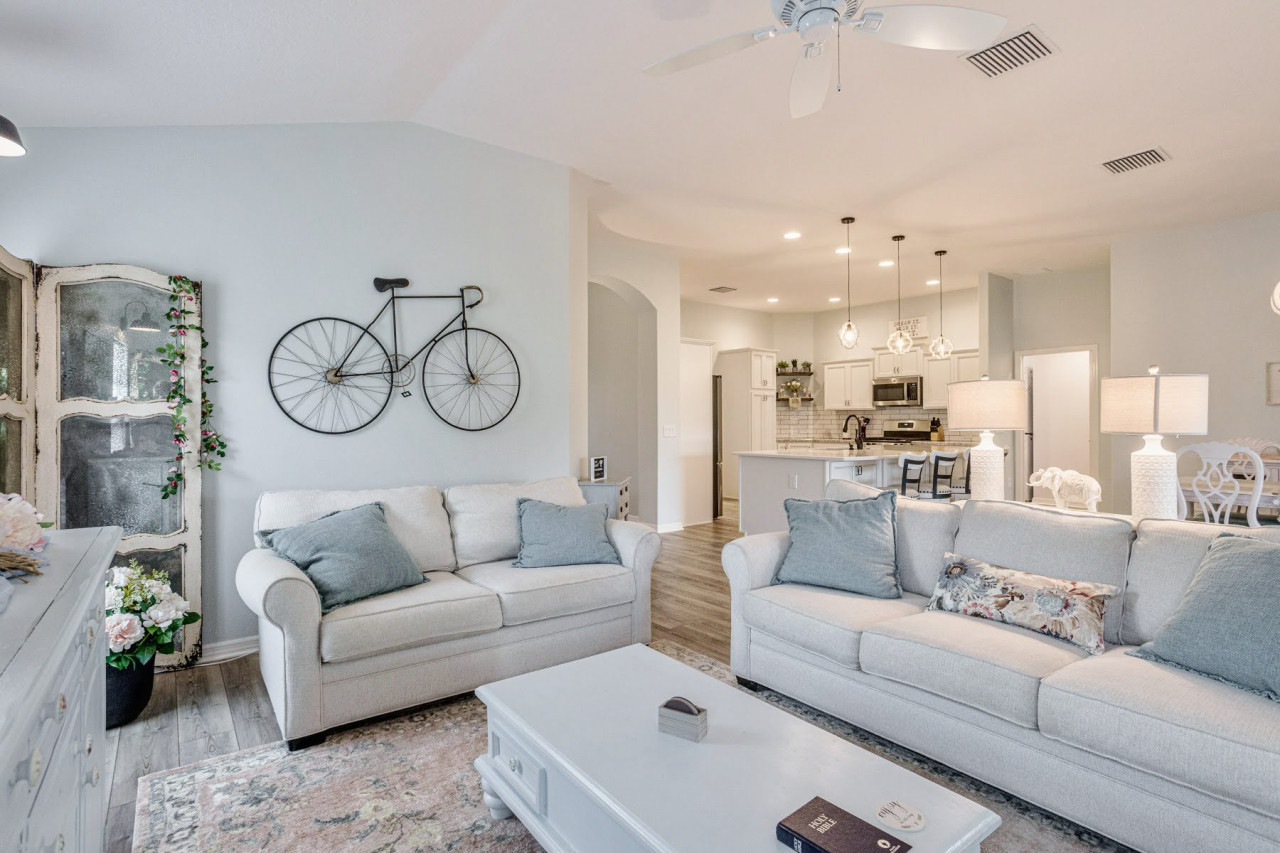 IMPORTANT !!! JAN-MAR only full month bookings / no partial bookings allowed. Golf cart use optional - $12/day or $300/month - billed on separate invoice after signing applicable waiver. Welcome to Your Radiant Retreat in The Villages, Florida! ☀️ Discover your dream home in the lively Village of St. Catherine, where comfort meets elegance in this charming single-story residence. Perfect for those seeking an active yet relaxing lifestyle, this home offers everything you need to enjoy the best of The Villages. Bright and Spacious Living Area Step into a world of warmth and style with this 3-bedroom, 2-bath home, featuring an open and spacious living area designed for both leisure and entertainment. The beautiful wood-like flooring flows seamlessly throughout, creating a cohesive and inviting space. Large windows flood the room with natural light, highlighting the tasteful finishes and creating a bright, airy feel that makes you feel right at home. Chef’s Kitchen and Cozy Coffee Nook The gourmet kitchen is a culinary delight, complete with top-of-the-line appliances, ample counter space, and custom cabinetry. It’s perfect for whipping up everything from quick snacks to elaborate meals. Adjacent to the kitchen, a delightful coffee nook provides a cozy corner to start your day, with extra storage and a dedicated coffee counter that makes your morning routine a pleasure. Elegant Master Suite Unwind in the elegant master bathroom suite, where modern design meets practicality. The sleek granite countertops offer plenty of space for all your essentials, while the vanity area, accented with a stylish mirror and gentle lighting, adds a touch of luxury to your daily routine. Outdoor Fun and Relaxation Outside, enjoy a well-maintained front yard and a spacious three-car garage, offering plenty of room for vehicles and storage. This home also includes a new gas golf cart, two trail bikes, and a barbecue, providing everything you need to explore The Villages and make the most of the sunny Florida weather. Explore The Villages Living in the Village of Saint Catherine puts you just a short golf cart ride away from The Market at Sawgrass Grove, a hub for daily entertainment, dining, and socializing. Golf lovers will appreciate the proximity to Southern Oaks Championship Golf Course, as well as pitch and putt courses and an 18-hole putting course. You’re also minutes from the vibrant Brownwood Paddock Square and the charming Edna's on the Green. Plus, the up-and-coming Eastport Area is just across the Bexley Trail bridge, offering even more amenities and attractions. Make This Home Yours Don’t miss your chance to enjoy a life of comfort and style in this Radiant Retreat in Saint Catherine. With a perfect blend of elegant design, fun amenities, and a prime location, this home is ideal for anyone looking to make the most of The Villages’ vibrant lifestyle. Contact us today to schedule a viewing and make this beautiful home your own! Bedroom Layout: Bedroom 1: One King Bedroom (Sleeps 2 guests) Bedroom 2: One Queen Bedroom (Sleeps 2 guests) Bedroom 3: One Full Bedroom (Sleeps 2 guests) Make this Radiant Retreat your new home in The Villages and experience the perfect blend of comfort, convenience, and vibrant living.