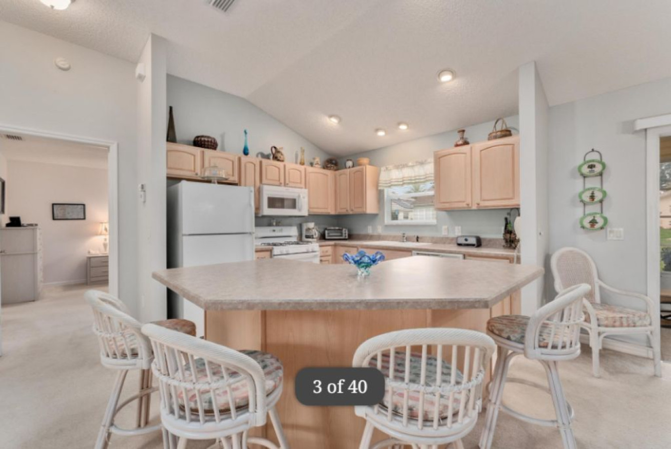 June 2024 4.00This is a nice home and well equipped. It is quiet, private and nearly backing to the equestrian area. The lanai is a great place to hang out as it is private. It is in a good location for getting to Spanish Springs town square - a relatively short and safe golf cart or bike ride away. A family pool is less than 1/2 mile away as is the Santiago golf course and putting practice. For water aerobicslap swimming, water volleyball, La Hacienda or Laurel Manor are both short golf car or bike rides. Tierra Del Mar, with an adult pool, golf, playhouse and restaurant with a view of the golf course is about 2 miles away. Lake Sumter town square, while a bit further, is within 1/2 hour ride in a golf car. Publix and other stores are near Spanish Springs town square as well. It would be nice to get the newspaper included with the rental because that has interesting information about the area and provides the updated recreation schedule each Thursday. The house is in great shape and would benefit from an update in the decorating. I mistakenly missed a difference in price due to clearning and other fees, increasing the cost by 20%. Clearly stating the total price of the rental in correspondence with the renter would be beneficial.